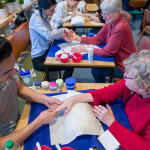 Einen bunten Spielenachmittag gestaltete die Werk 171 am 14. Februar mit den Seniorinnen und Senioren in der St. Matthäus-Gemeinde in Huchting. In dem Projekt “Genera(k)tionen” hatten die Schülerinnen und Schüler in Mediengestaltung ein „Dalli-Klick“, Alten gerechte Puzzles und Memorys erstellt, sowie in Mode/Textil Fühldecken, an denen die Seniorinnen und Senioren kleine Alltagsgegenstände ertasten mussten. Als Belohnung für fünf erratene Motive massierten die Schülerinnen und Schüler die Hände mit selbst gerührten Pflegecremes oder lackierten Nägel. Die Bilder zeigen, wie viel Spaß allen der Nachmittag bereitet hat.