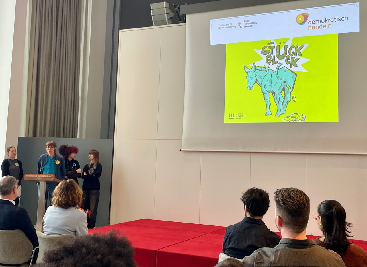 Bei der regionalen Preisverleihung von “Demokratisch Handeln” in der Bürgerschaft präsentierten wir unser Projekt „Ein Stück Glück“.
